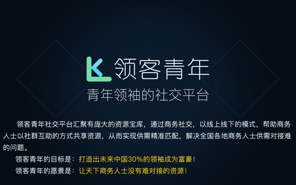 领客青年领客青年社交平台汇聚有庞大的资源宝库,通过商务社交,以线上线下的模式,帮助商务人士以社群互助的方式共享资源,从而实现供需精准匹配,解决全国各地商务人士供需对接难的问题。 https://v.qq.com/x/page/b0559ypxihj.html